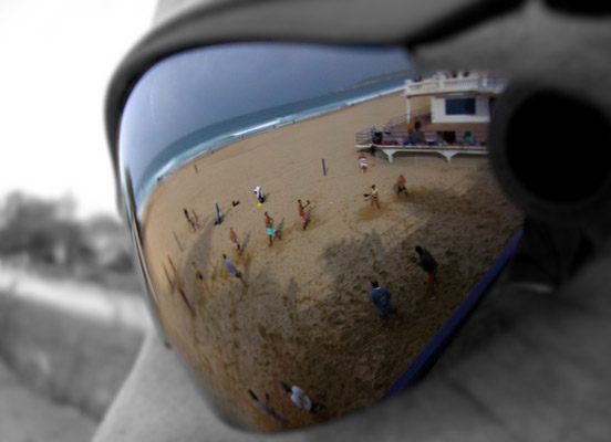 Descripción: Unas partidas de palas vistas a través del reflejo de las gafas.