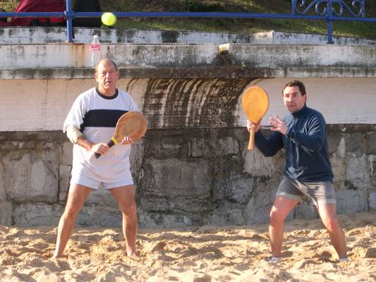 Descripción: "Polo" y Manuel (en su reaparición como palista) con el muro de la Concha de fondo.