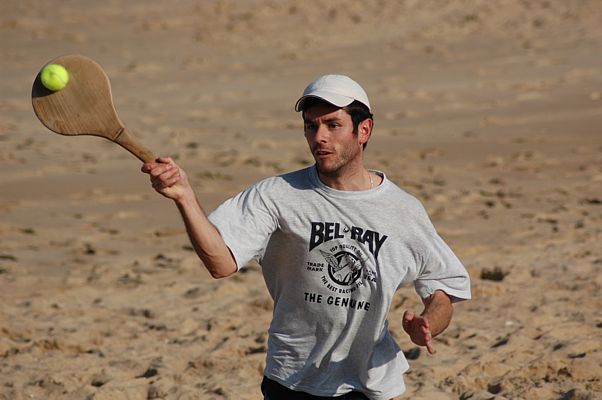 Descripción: En esta instantánea podemos observar cómo "Eagle" pega la bola, cogiendo la pala desde el borde del mango, que unido al lugar donde está la bola y la cara desencajada, nos hace suponer que fue un verdadero pelotazo (doy fe).