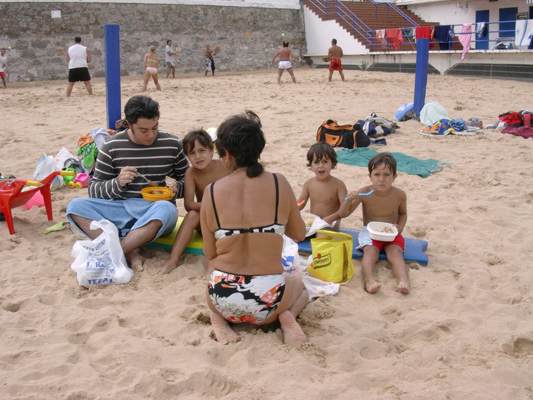 Descripción: ¡¡ Los palistas también comen !!. Aquí vemos a la familia de Chelo comiéndose todas las albóndigas con arroz, para crecer y ser tan fuerte como Luis "el bombero".