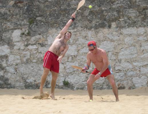 Descripción: Manuel se estira, pero no llega (es que iba un poco fuerte) y Ramón "lo deja todo" para recoger una bola.