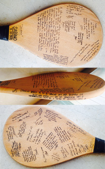 Bajo estas líneas unas fotos de Sabino en el año 2009 y la pala con las dedicatorias que fue incinerada junto a él. Descansa en paz Sabino.