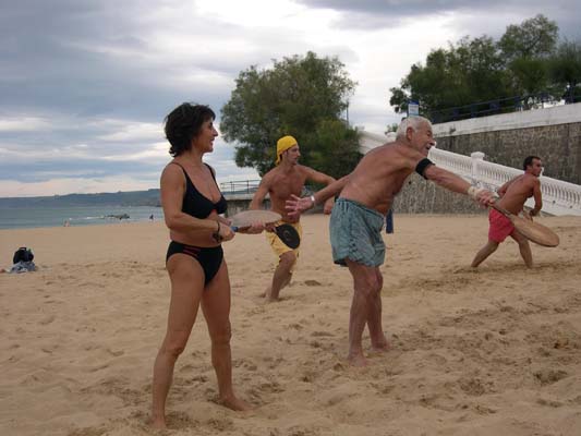 Descripción: Manolo Soto "matando" como un torero, mientras Chelo mira al maestro.