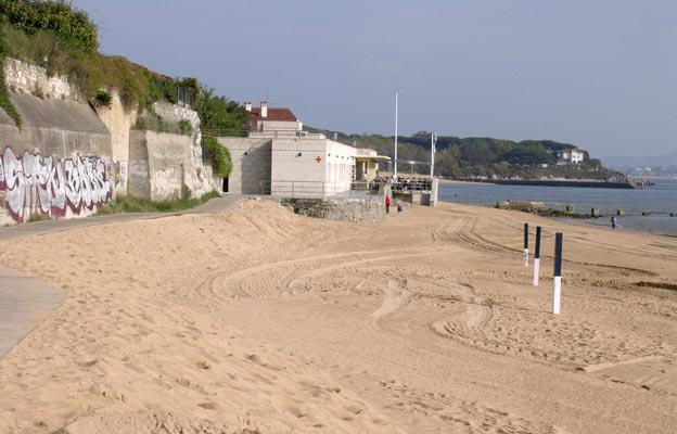 Descripción: Nueva Zona de Palas en la playa de los peligros. A la izquierda de la imagen vemos el paseo que recorre toda la playa, utilizado por peatones y ciclistas.