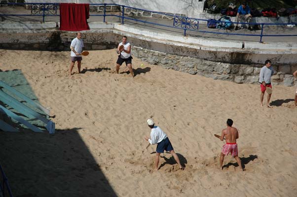 Descripción: Buena partida en la "Catedral" o pista número uno de la Concha, también llamada la "sound-blaster", donde la bola suena especialmente bien. Pegando, "Eagle" y Oscar y parando "Polo" y "Nanín".