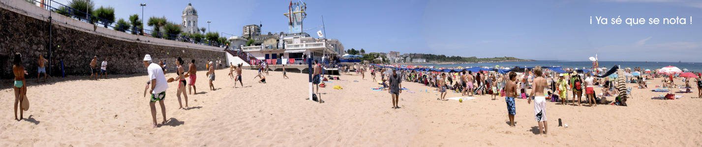Descripción: Panorámica de la Primera Playa del Sardinero, está mal hecha, lo sé, pero nos da una idea de cómo estaba la playa.