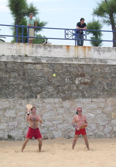 Descripción: "El perro más famoso, "Pupi", con su dueña observa la partida de Manuel y Ramón."
