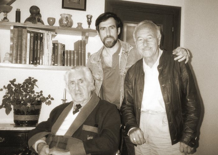 pie: Jose Castillo y Manolo Soto, sentado: Mariano Pérez, iniciador del juego de las palas, y es que según contaba dejaron de usar