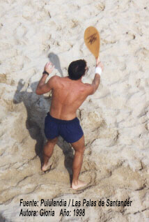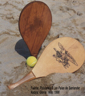 " Cuentan los más veteranos que el juego lo ideó un tal Mariano Pérez hacia 1928 en la playa de la Magdalena, junto al Club de Tenis de Santander, que "cedía" las bolas que caían en la playa o eran vendidas por los recogepelotas a 50 céntimos o peseta. Según el propio Mariano, en articulo publicado en El Diario Montañés del 9/10/97, junto con Ramón Gancedo, Lucas Alonso, Luis Bolado y Modesto Borragán, y con unas raquetas viejas que el mismo encordó, jugaban a un improvisado tenis en una pista dibujada en la arena húmeda. Como el cordaje no aguantaba decidió sustituir la raqueta por una pala de madera que funcionó al cuarto prototipo. Más adelante se abandonó la arena húmeda y, perdiendo el bote, pasó a jugarse en la arena seca.