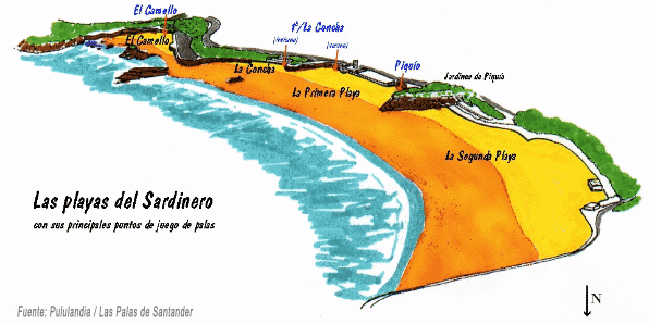 " Aunque el juego naciera en la playa de la Magdalena se juega generalmente en todas las playas y mucha gente porta las palas en su equipaje de playa, pero los puntos en los cuales se juegan las partidas de alto nivel están preferentemente situados en las playas del Sardinero.